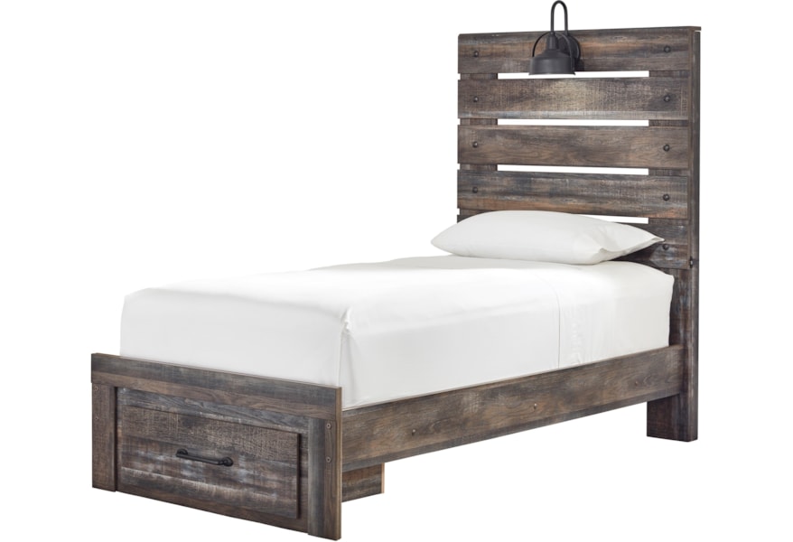 Signature Dalton Rustic Twin Bed With Light Footboard Drawer Walker S Furniture Platform Beds Low Profile Beds